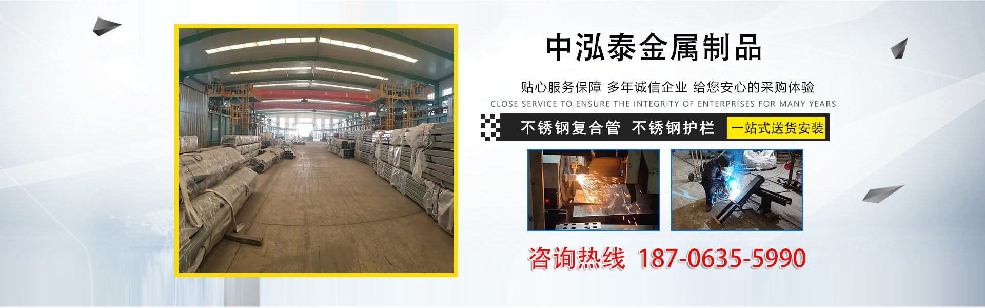 山东中泓泰金属制品有限公司集生产、销售、设计、制作、安装为一体,并具有一整套完善的运营模式。常年专业从事生产、销售各种201不锈钢复合管、304不锈钢复合管、316不锈钢复合管、不锈钢复合管、不锈钢护栏、304不锈钢复合管护栏、201不锈钢复合管护栏、不锈钢碳素钢复合圆管系列等新型金属材料;另设金属护栏工程制作安装,公司拥有完整的不锈钢及不锈钢复合管生产线24条,以及各类金属加工设备多套(数控等离子切割机、冲床、冼床等),公司还拥有独立的镀锌和喷塑车间,良好地处理好钢板表面效果。 公司优势: 一、专业性强 1.专业设计、制作和安装不锈钢复合管工程及金属栏杆工程。集设计、生产、销售与安装为一体的完整体系。 2.专业应于:桥梁栏杆、市政建设、景观护栏、天桥护栏、隧道护栏、铁路护栏、体···...